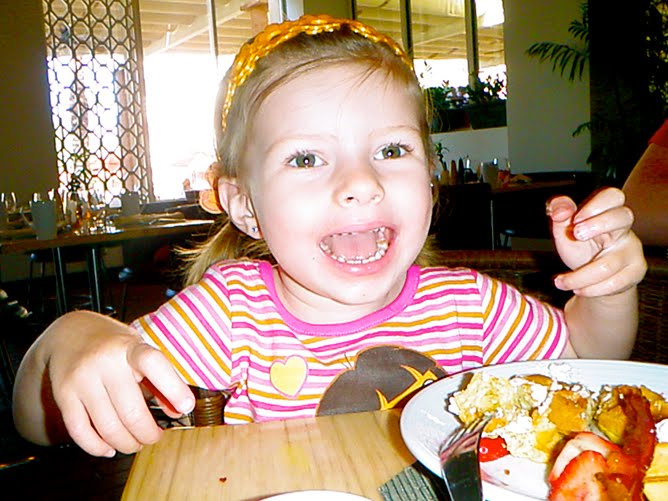 Upon arrival we were greeted by Spongebob Squarepants and Dora the Explorer. This was the perfect start to our fun-filled weekend. Click over to view a short video of my daughter when she first saw Dora. After spending some time with Dora we decided to hit the pool for some sun and relaxation. My husband and daughter enjoyed swimming and playing on the sandy beach while mommy enjoyed a (virgin) margarita by the pool. The resort grounds are truly beautiful with fire pits, palm trees and a poolside bar. It was quite relaxing!