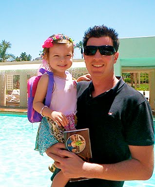 Upon arrival we were greeted by Spongebob Squarepants and Dora the Explorer. This was the perfect start to our fun-filled weekend. Click over to view a short video of my daughter when she first saw Dora. After spending some time with Dora we decided to hit the pool for some sun and relaxation. My husband and daughter enjoyed swimming and playing on the sandy beach while mommy enjoyed a (virgin) margarita by the pool. The resort grounds are truly beautiful with fire pits, palm trees and a poolside bar. It was quite relaxing!